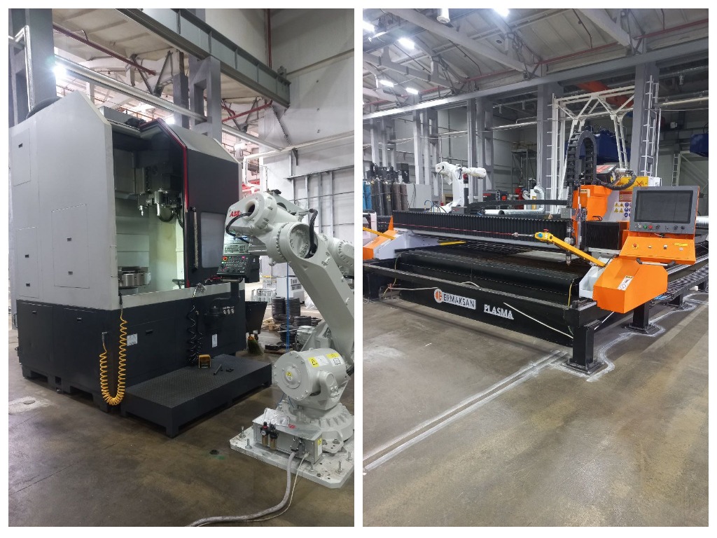 Комплексы обработки включают резку, штамповку, сварку, мехобработку и мойку. Роботы-транспортеры перемещают заготовки между операциями, используя маршруты, заложенные в программной документации.
