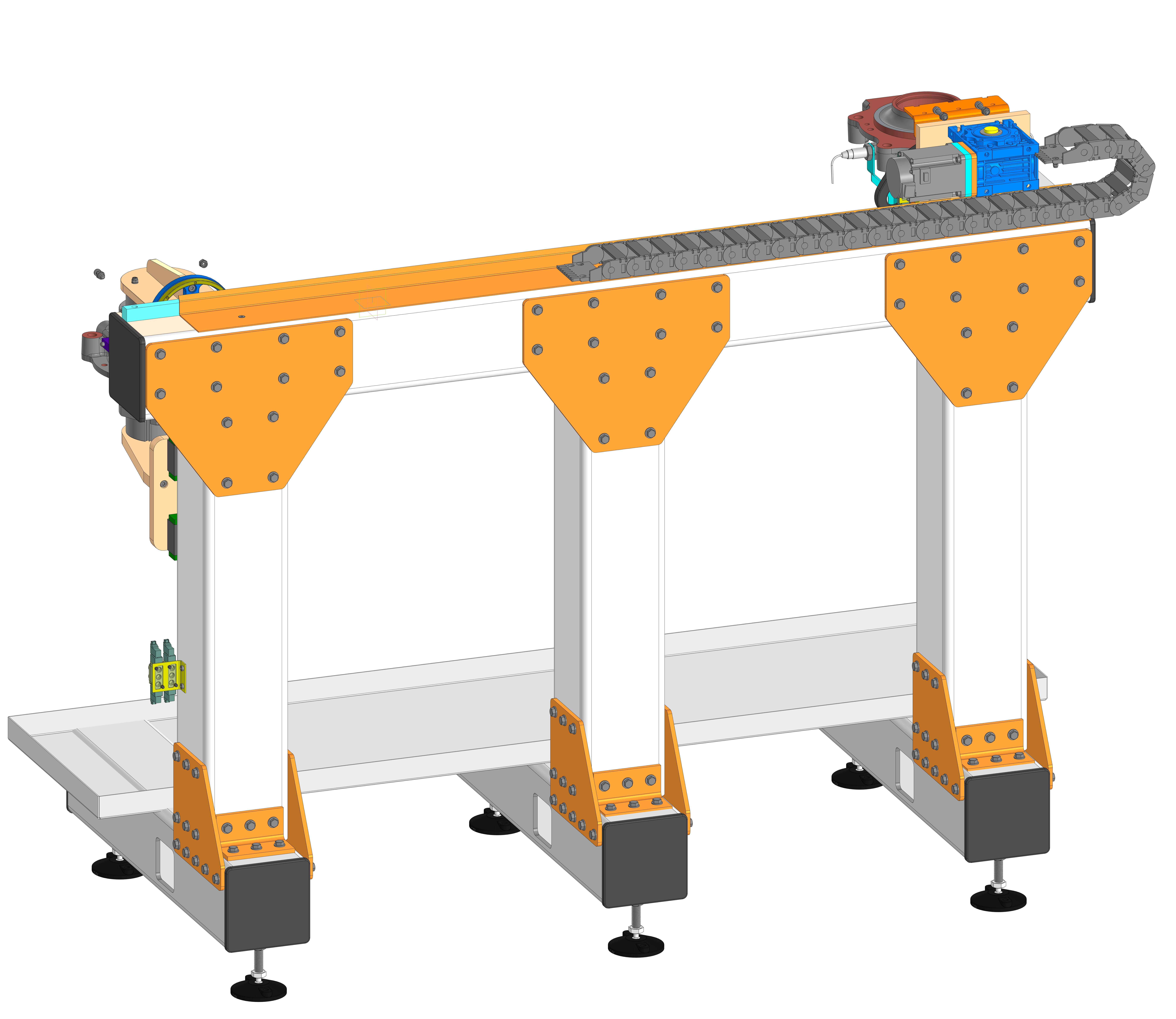 Для снижения трудоемкости, повышения эффективности и автономности, применена портальная система автоматической загрузки с двумя независимыми манипуляторами и кольцевые накопительные конвейеры для заготовок и готовых деталей.
