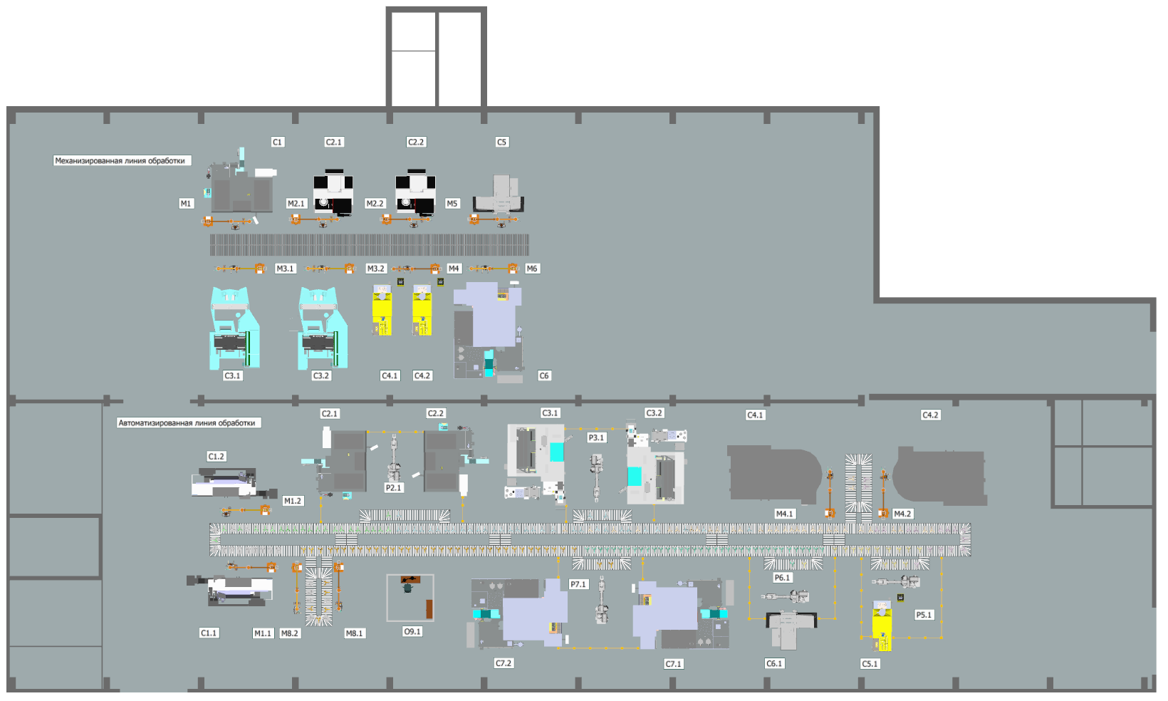 Большое значение имеет рациональная организация производственного пространства — оптимальная расстановка оборудования и логистика потоков позволяют минимизировать потери времени на перемещение заготовок и снизить простои.