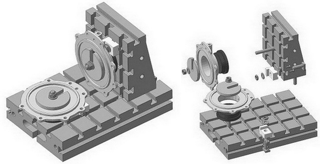 Круглые поворотные и наклонно-поворотные столы — это специализированные устройства, предназначенные для закрепления и пространственного позиционирования заготовок при обработке на станках с ЧПУ. Конструктивно такие столы состоят из планшайбы, червячной пары (червяк и червячное колесо) и системы фиксации положения.