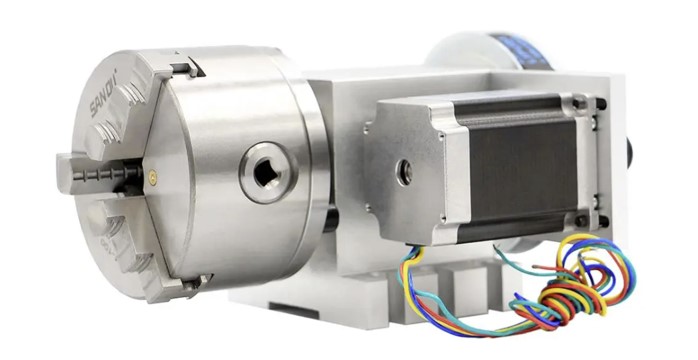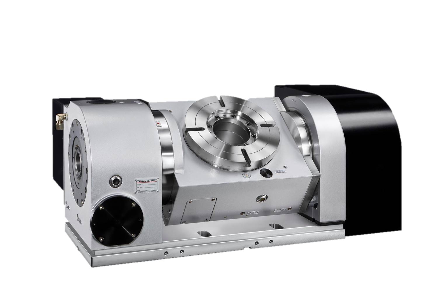 Большинство моделей оснащается приводом с числовым программным управлением, что позволяет автоматически поворачивать или наклонять заготовку под заданным углом в процессе обработки. В то же время существуют модификации с ручным управлением, чаще применяемые в составе наклонно-поворотных столов при выполнении вспомогательных операций.