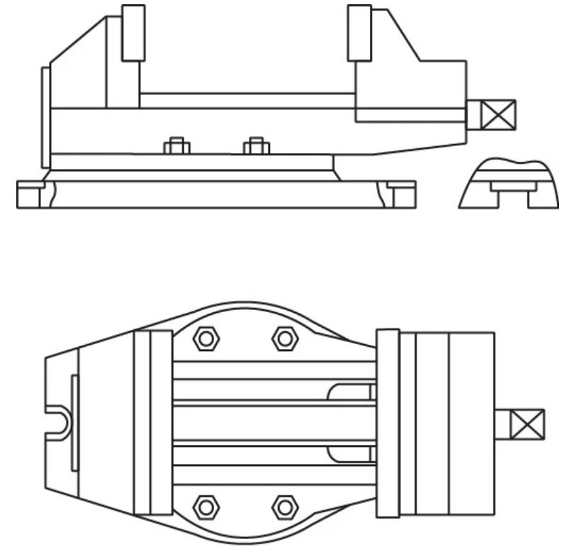 Тиски. Могут иметь неповоротную и поворотную конструкцию. Универсальные устройства разворачиваются сразу в нескольких плоскостях, что облегчает установку заготовок для обработки наклонных поверхностей. Тиски могут комплектоваться пневмо- или гидроприводом, его наличие существенно облегчает физическую нагрузку оператора станка.